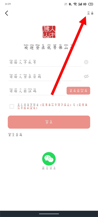 2、在登录界面,点击右上角的注册,进入注册新账号页面。