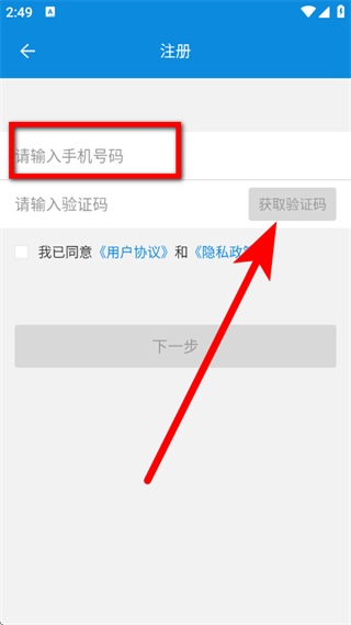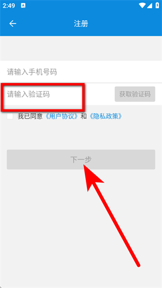 4、输入验证码,勾选协议后,点击下一步,完成注册流程。