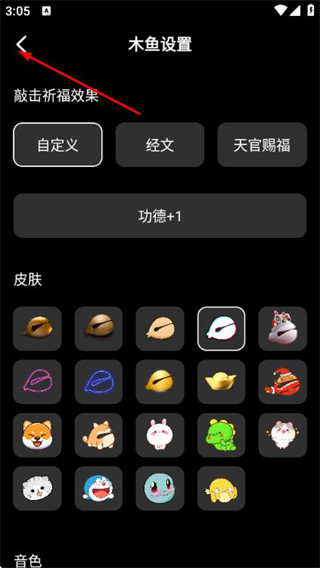 3、在木鱼设置页面点击左上角的返回按钮,即可完成设置修改。