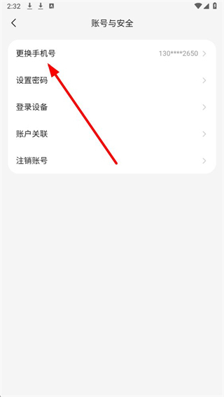3、在账号与安全界面中,找到更换手机号选项并点击,进入更换账号的操作页面。