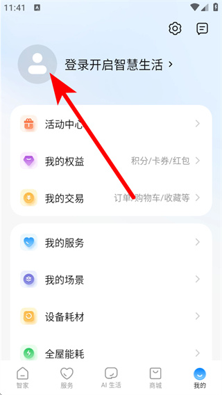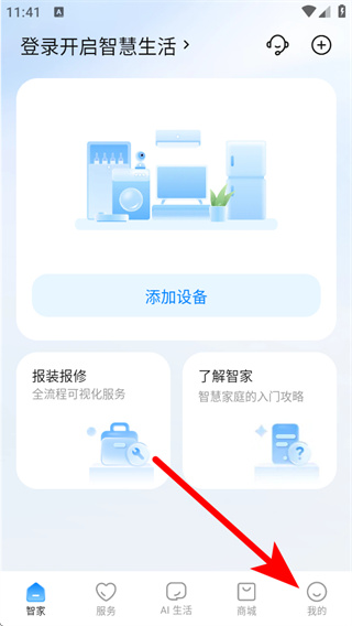 1、打开海尔智家APP,点击右下角我的,进入个人功能页面。