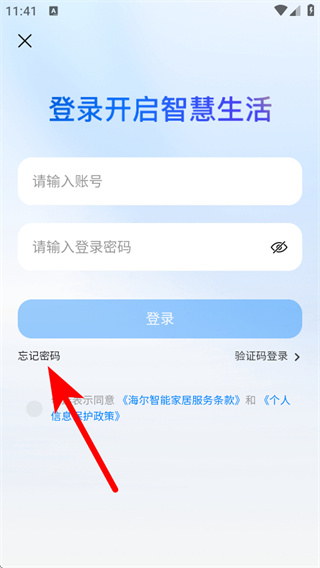4、选择账号密码登录,点击下方忘记密码,后续按提示完成找回。