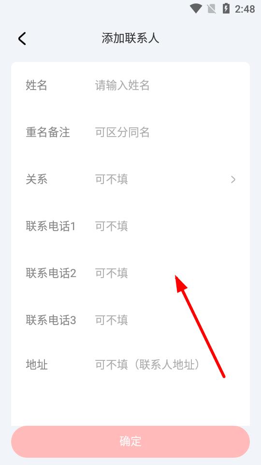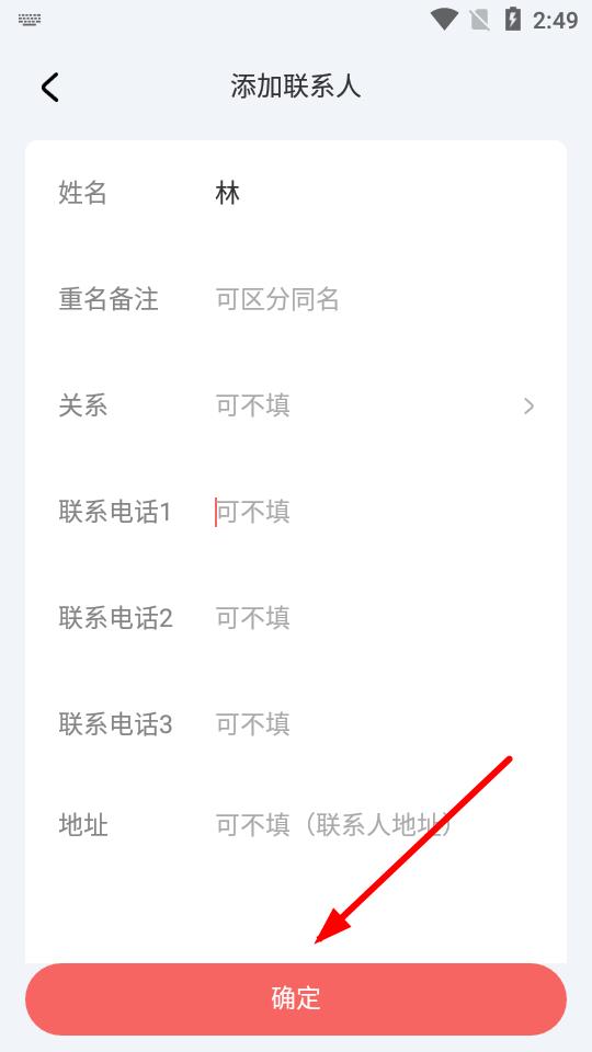 4、填写好信息后,点击页面下方的确定按钮,即可成功添加联系人。