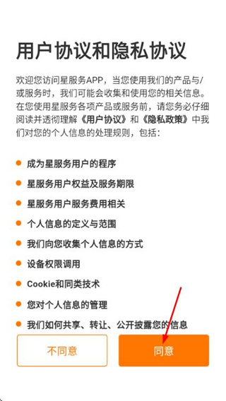 1、在使用协议隐私政策弹窗中点击同意按钮,进入登录页面。