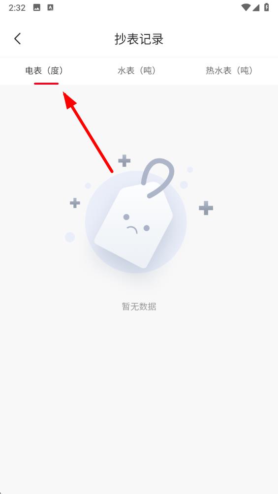 3、在抄表记录页面,点击电表选项卡,查看电表的读数情况。