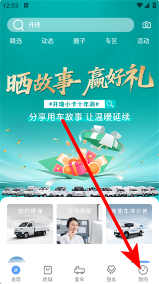 1、打开开瑞汽车,点击底部的我的,进入个人页面。