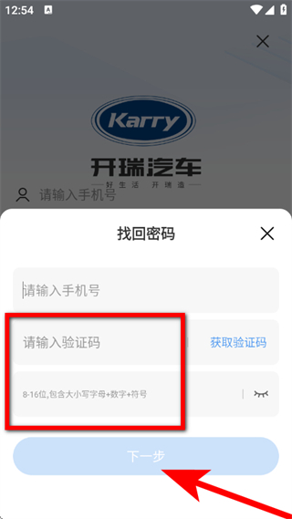 5、输入验证码,设置新密码,点击下一步,完成密码找回。