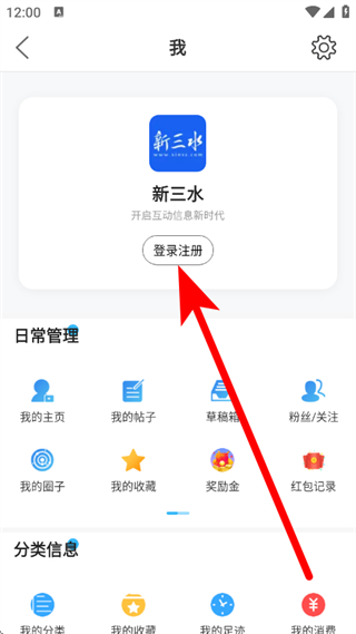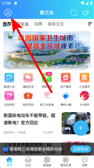 1、打开新三水,点击左上角的个人图标,进入我的页面。
