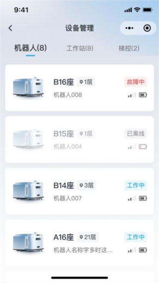 美房机器人是功能强大的智能清洁设备服务软件,作为智能清洁机器人的专属辅助工具,支持清洁任务一键下发,实时掌控机器状态与清洁进度,提供机器使用技巧查询,同时可管理机器人耗材、实时了解耗材剩余情况,便于及时补充,全方位为用户打造无忧的智能清洁使用体验。