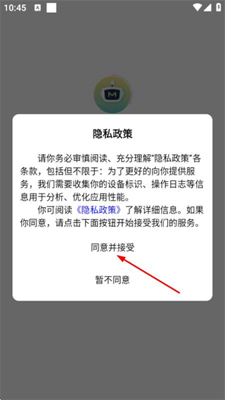 1、在使用协议隐私政策弹窗中点击同意按钮,进入登录页面。