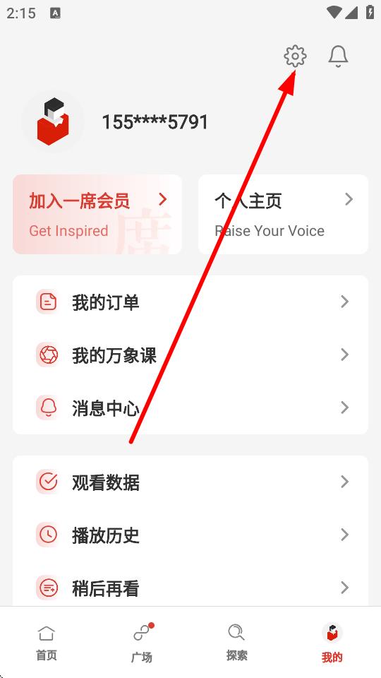 1、在个人中心页面右上角,点击设置图标进入设置界面。