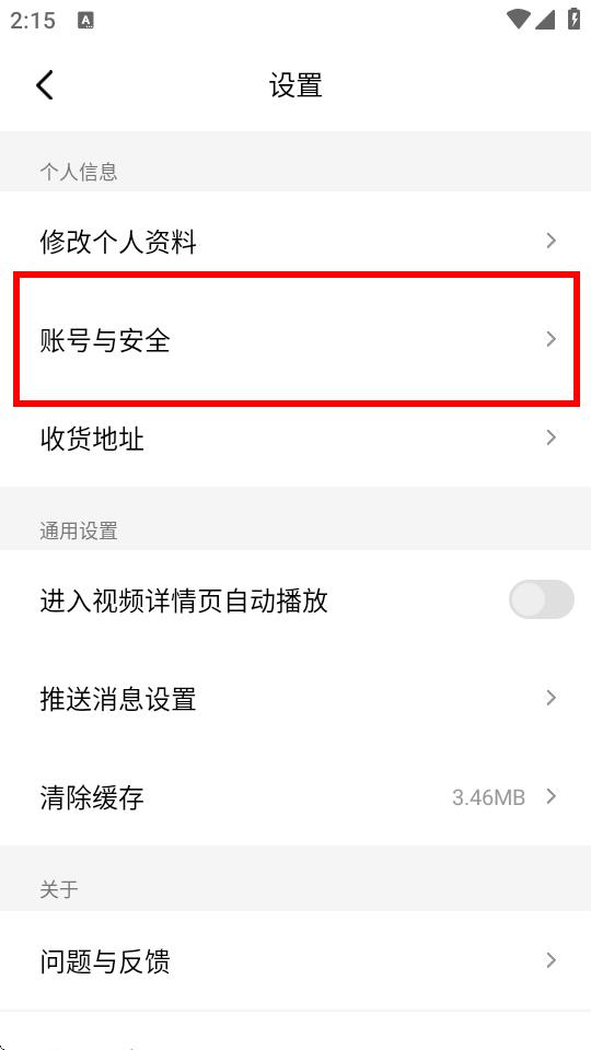 2、在设置界面里,找到并点击账号与安全选项。