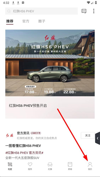 1、在红旗智联界面底部,找到我的选项,点击进入我的页面。