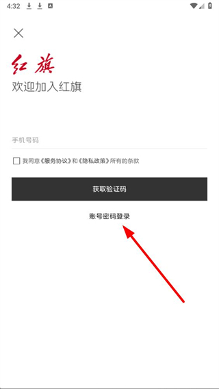 4、在密码登录界面中,输入手机号码与对应密码,勾选协议条款后点击登录按钮,即可完成密码登录操作。