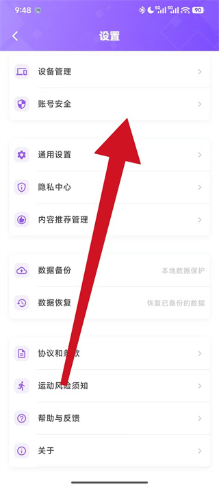 3、在设置页面中,找到并点击账号安全,进入账号与安全页面。