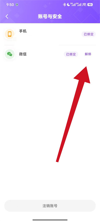 4、在账号与安全页面,找到微信对应的解绑,点击该按钮完成微信解绑操作。