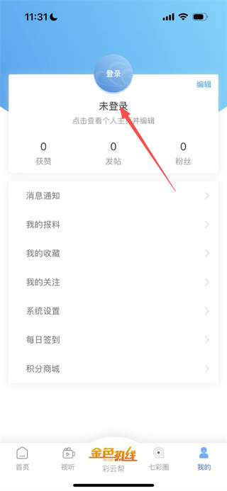 1、在七彩云端首页,点击底部的我的选项,进入个人中心页面。