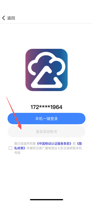 3、在登录选择页面,点击登录其他账号选项,进入验证码登录页面。
