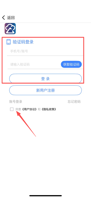 4、在验证码登录页面,填写信息并勾选协议后,点击登录完成账号登录。