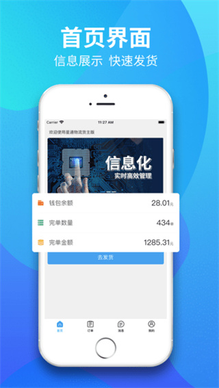 界面简洁功能聚焦,核心操作一键直达,支持途中快速接单、管理订单,无需复杂学习,适配货车司机移动作业的使用习惯。