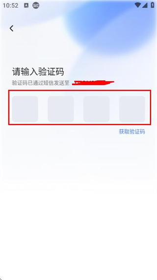 3、在输入短信验证码页面填写收到的验证码,完成账号的登录操作。