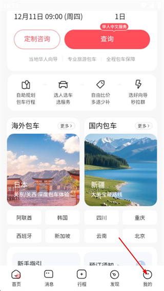 1、在皇包车旅行首页,点击底部的我的选项,进入个人中心页面。
