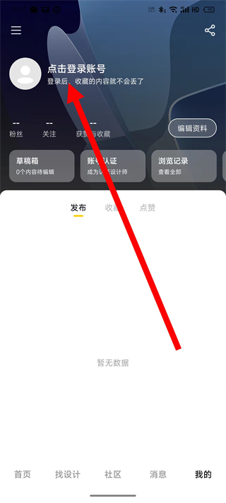 2、在个人页面,点击登录账号,进入登录界面。