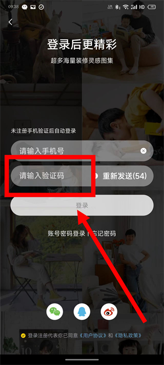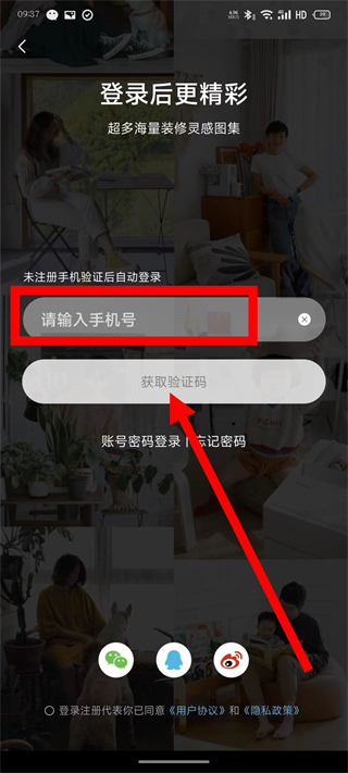 3、在登录界面,输入手机号,点击获取验证码。