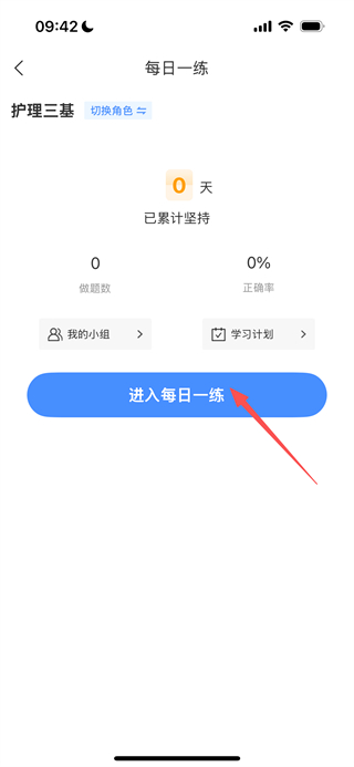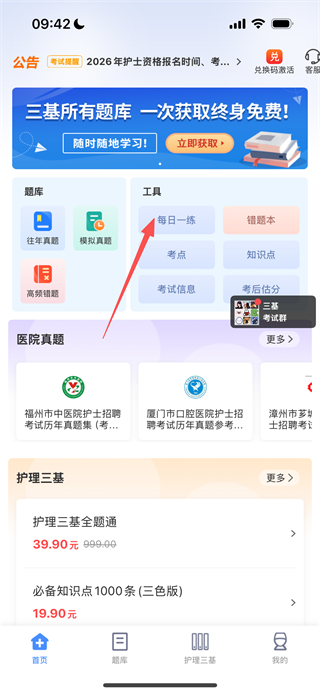 1、在小护帮手首页,点击工具区域的每日一练选项,进入每日一练页面。