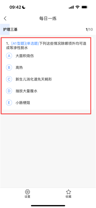 3、在习题页面,可查看护理三基相关题目并选择对应选项,完成当日练习。