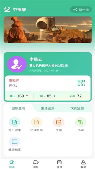 2、基于健康状况、护理需求等信息,联合专业护理人员制定专属护理方案,涵盖护理频次等细节,支持方案动态调整,适配不同阶段的护理需求变化。
