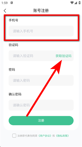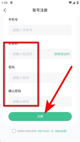 4、输入验证码设置密码,勾选协议后,点击注册,完成注册操作。