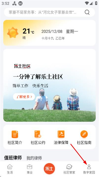 1、在首页点击底部数字家园,进入数字家园页面。