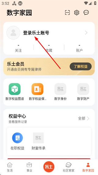 2、在数字家园页面点击登录乐土账号,进入登录页面。