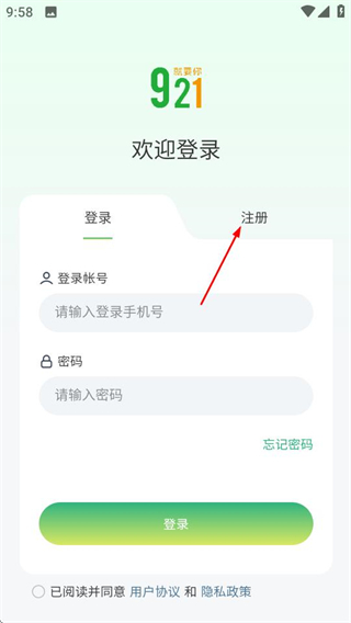 1、在921就要你首页,点击底部的我的选项,进入登录页面。