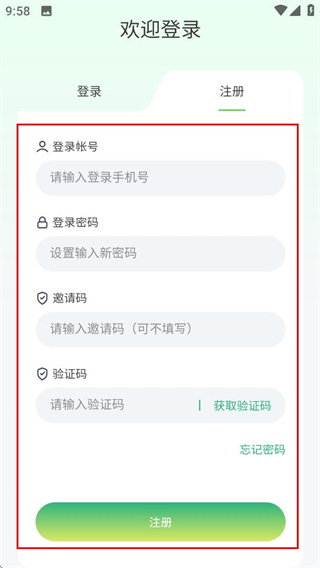 3、在注册页面,填写信息后,点击注册完成账号注册。