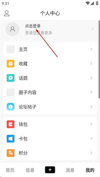 2、在个人中心页面,点击点击登录选项,进入账号密码登录页面。