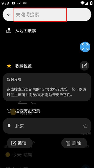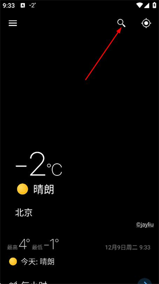 1、在天气首页点击右上角的搜索图标,进入搜索页面。