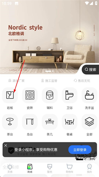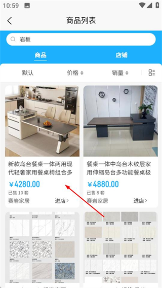2、在商城页面,点击岩板分类选项,进入岩板商品列表页面。