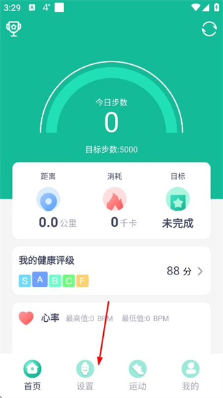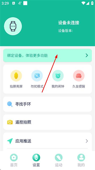 2、在设置页面点击绑定设备选项,进入搜索手环页面。