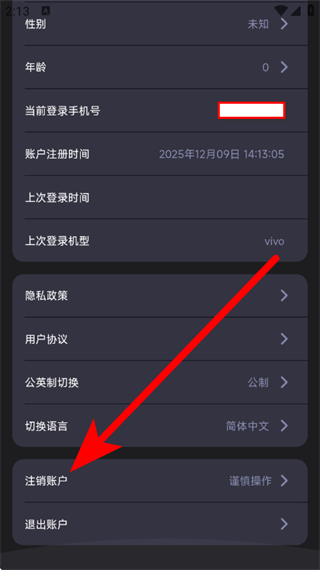 3、在设置页面,点击注销账户,弹出注销确认提示框。