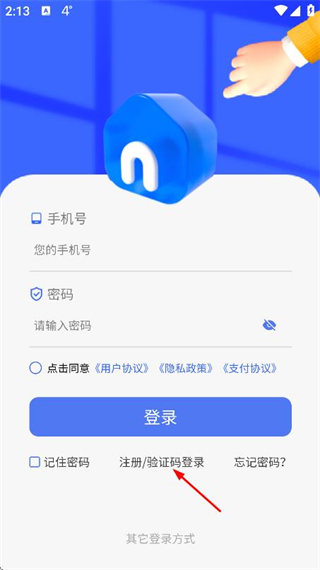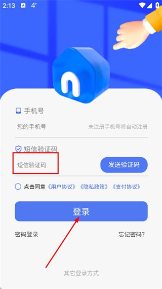 3、在验证码输入框中填写收到的验证码,点击登录完成账号的登录操作。