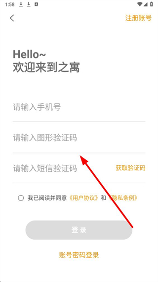 4、在验证码登录界面,填写手机号,获取验证码后输入短信验证码,勾选同意协议并点击登录完成操作。