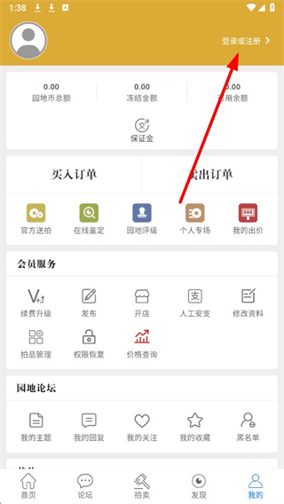 2、在我的页面,点击右上角登录或注册选项,进入登录界面。