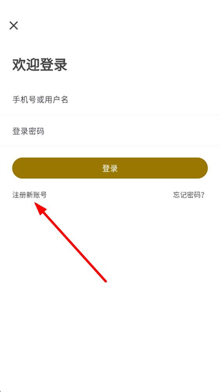 3、在登录界面,点击注册新账号选项,进入注册账号界面。