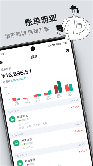 支持多种快速记账模式,无需繁琐操作就能完成收支录入,可自定义收支分类标签,适配日常购物、薪资入账等不同资金往来场景,大幅提升记账效率。