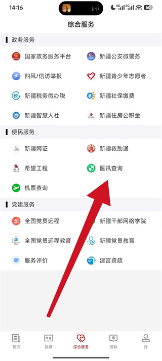 3、在综合服务的便民服务板块,选择目标服务,点击进入对应的服务页面。