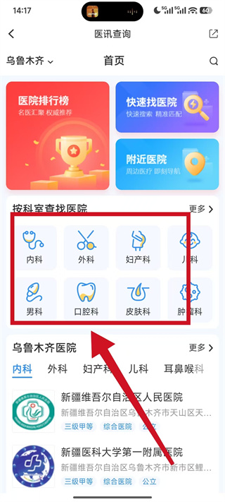 4、在服务页面中,可通过科室分类、医院排行榜等功能,获取对应的资讯或服务。