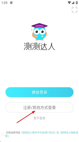 1、在登录页面点击注册其他方式登录选项,进入登录注册选择页面。