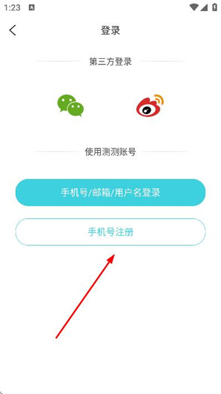 2、在登录选择界面选择手机号注册,进入注册页面。